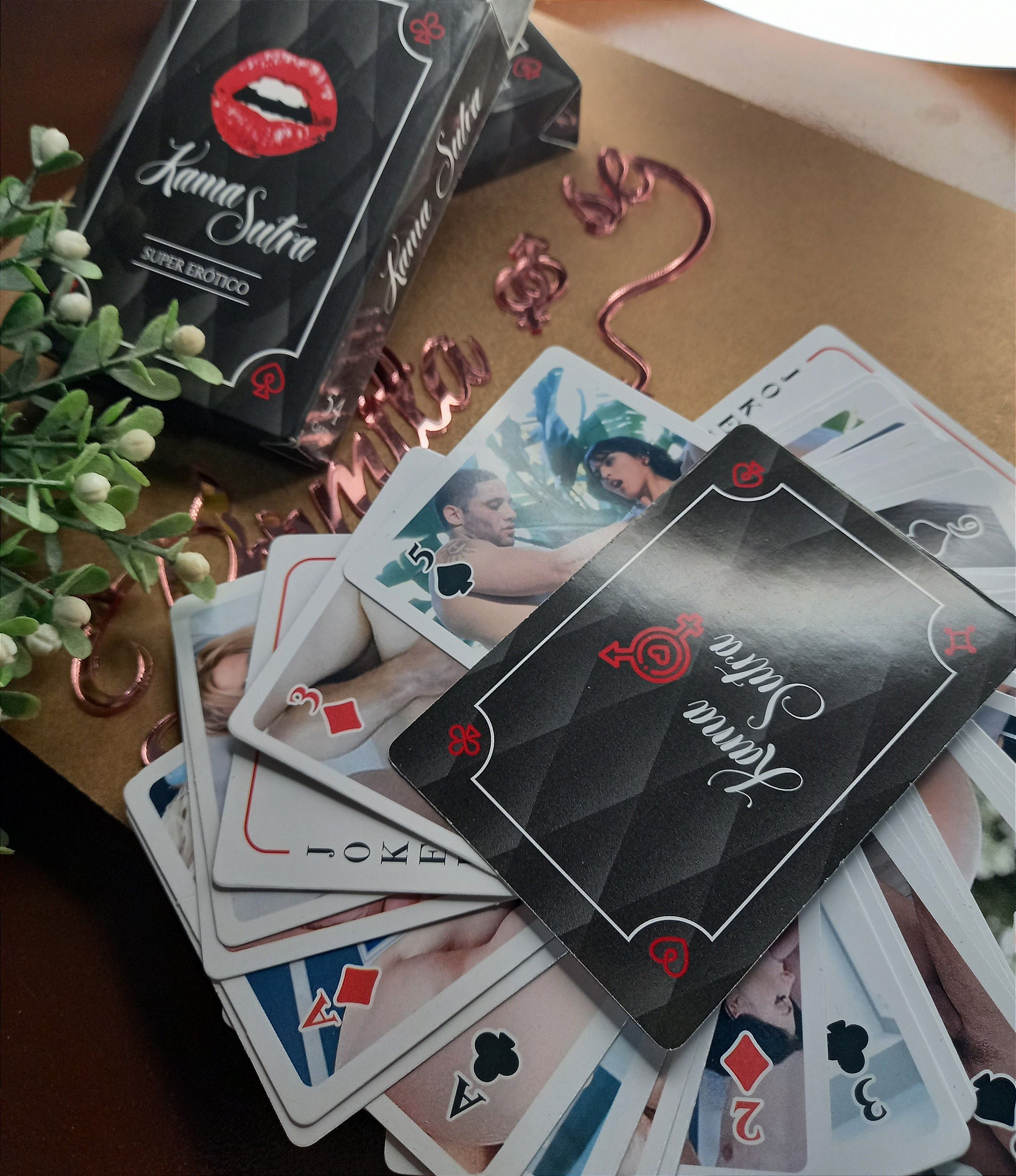 Ele contém 54 cartas e traz imagens reais de casais fazendo aquela coisinha gostosa...aiii que delicia. E não é só isso, ele possui todos os quesitos também de uma baralho tradicional. Então dá pra se divertir de várias maneiras.