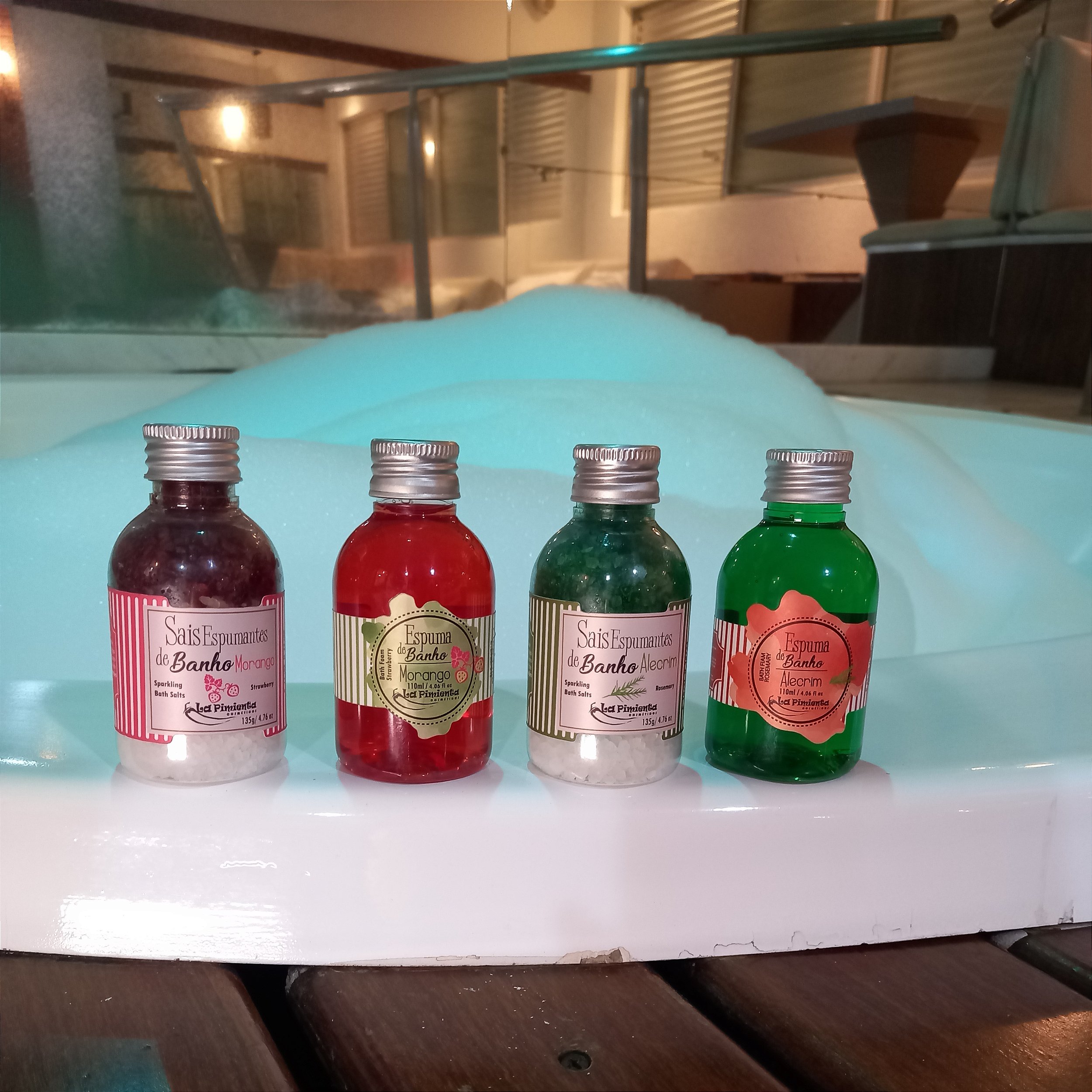 Espumas de Banho com Fragrância de Morango: As Espumas de Banho LaPimenta são deliciosos hidratantes aromáticos, desenvolvidos para serem usados em piscinas, banheiras e duchas de motel. Com uma apetitosa fragrância de morango, essas espumas relaxam e aliviam o stress, proporcionando um banho mais agradável. Elas deixam a pele super macia e perfumada, garantindo o bem-estar do casal.
